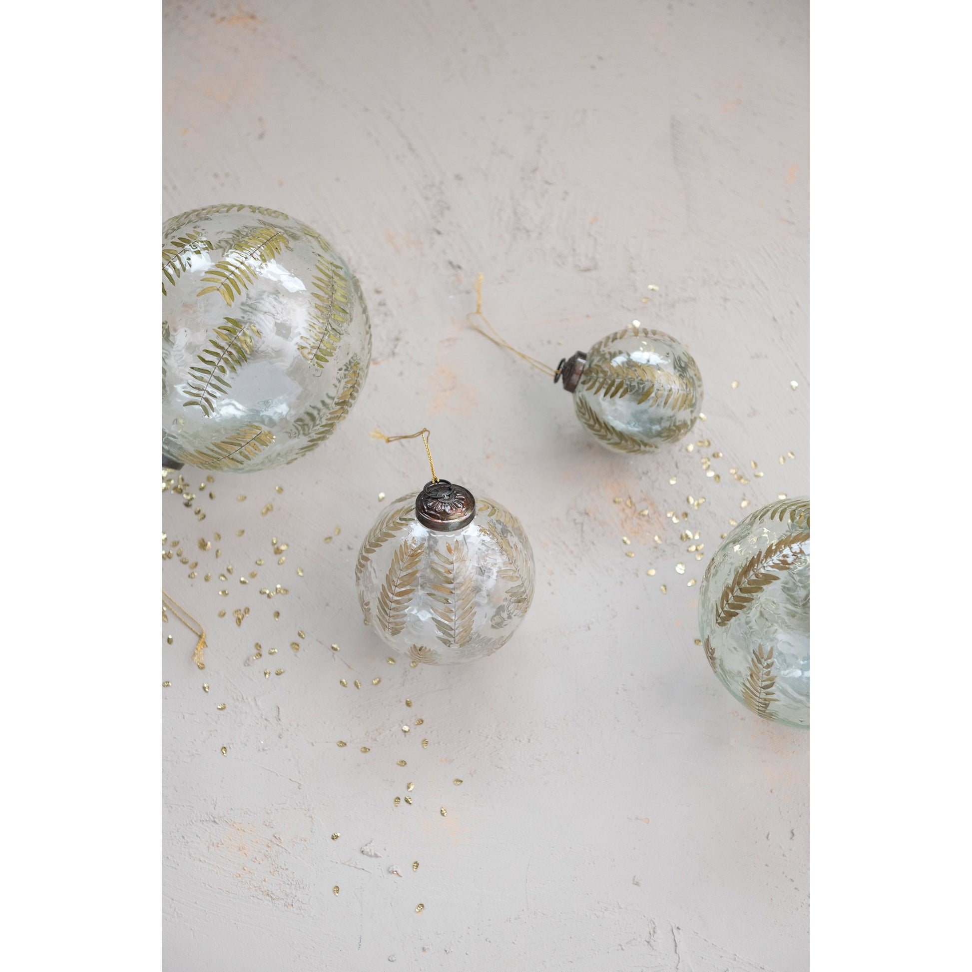 4" Round Hand-Blown Glass Ball Ornament with Embedded Natural Botanical