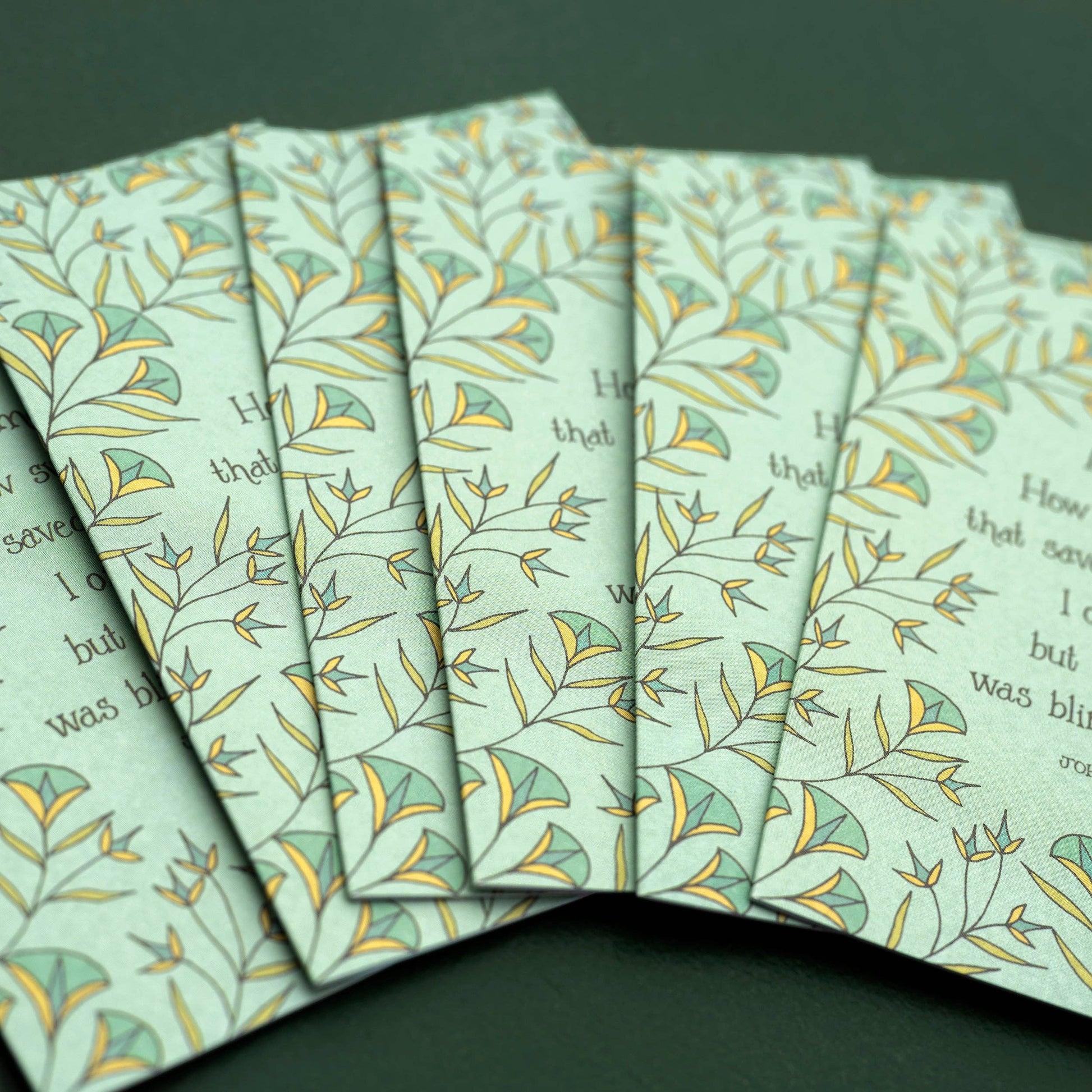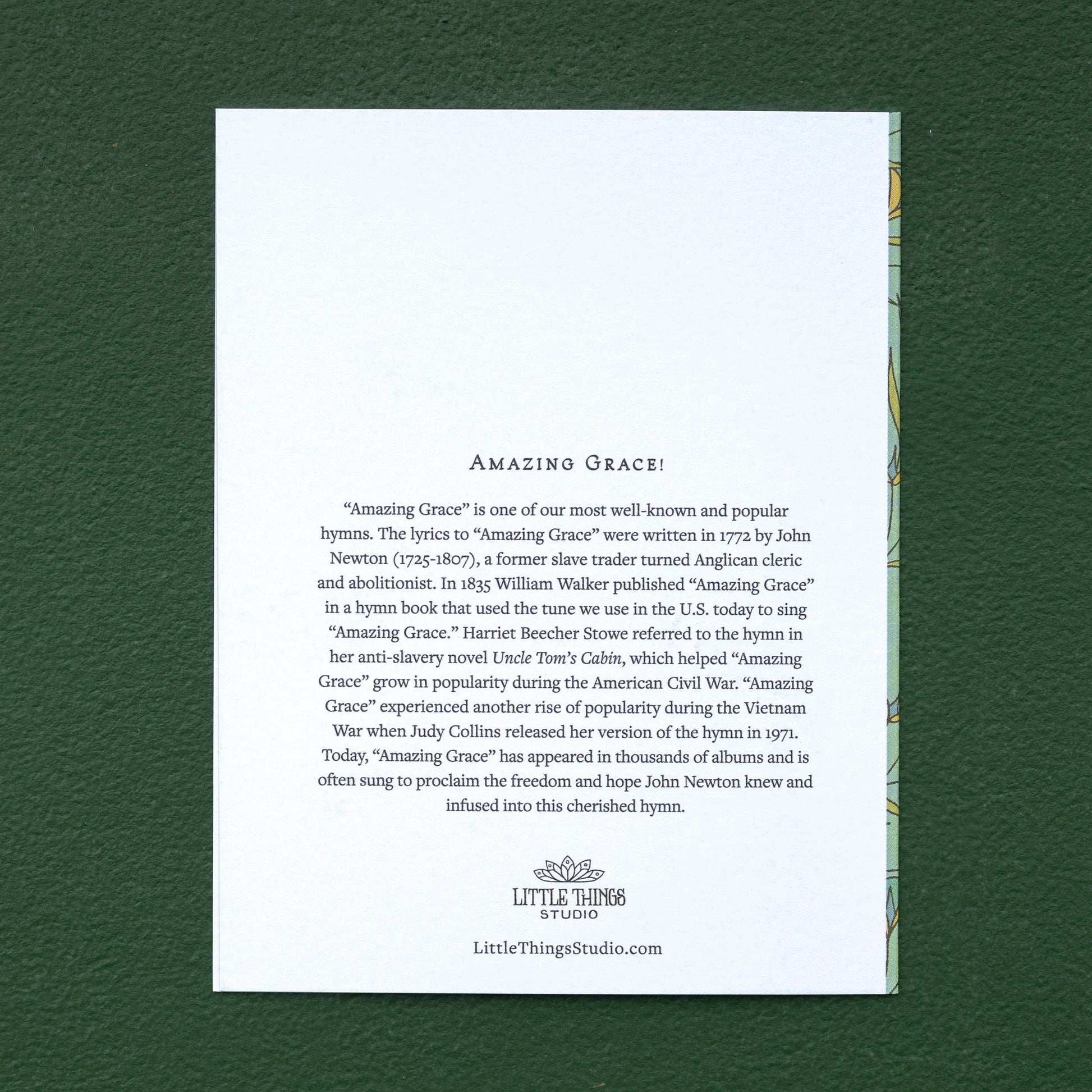 Want to send an uplifting message or encouraging note? These 6 Amazing Grace hymn greeting cards are the perfect way to say "I'm thinking of you" or "I care about you." Each card features the hymn's lyrics on the front and its history on the back. Designed and illustrated beautifully by Kate Whitley.