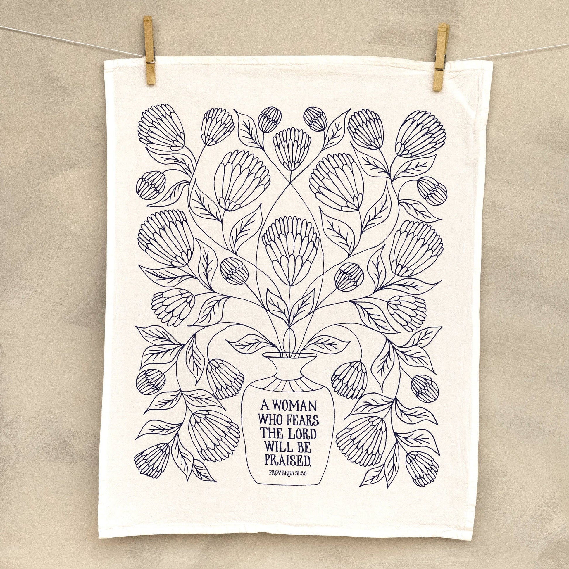 A Woman Who Fears the Lord Scripture Tea Towel — Proverbs 31
