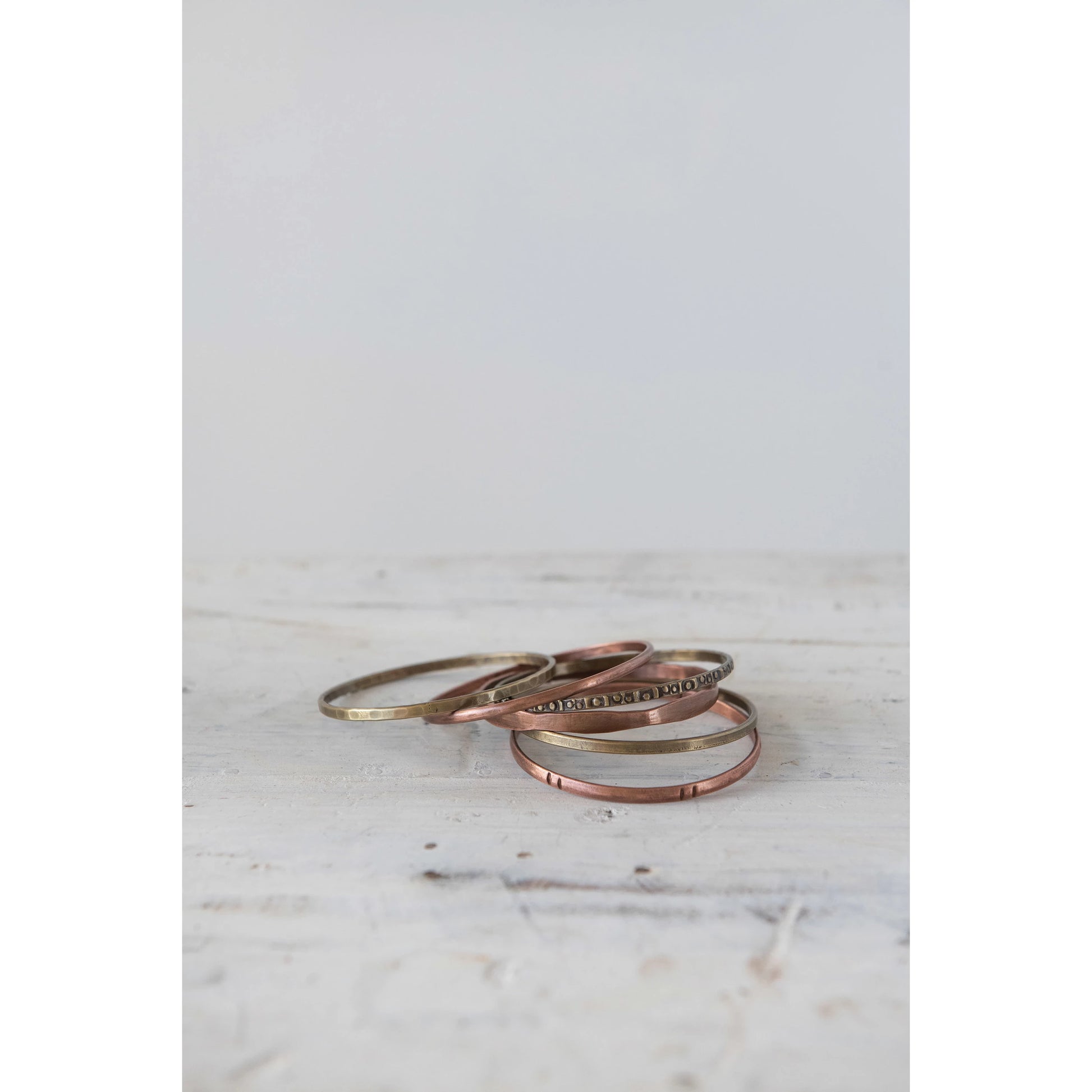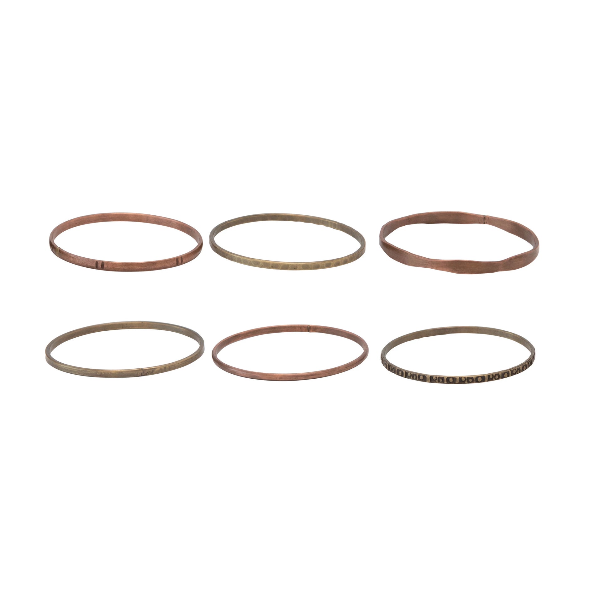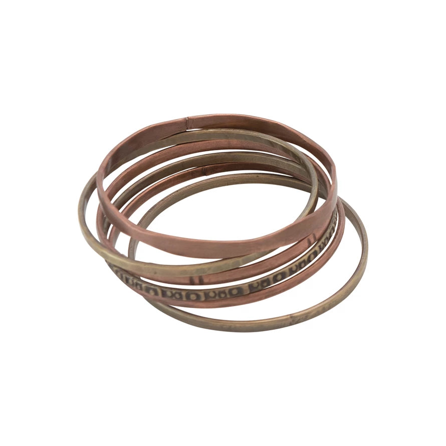 3" Round Antique Brass & Copper Bangles, Set of 6
