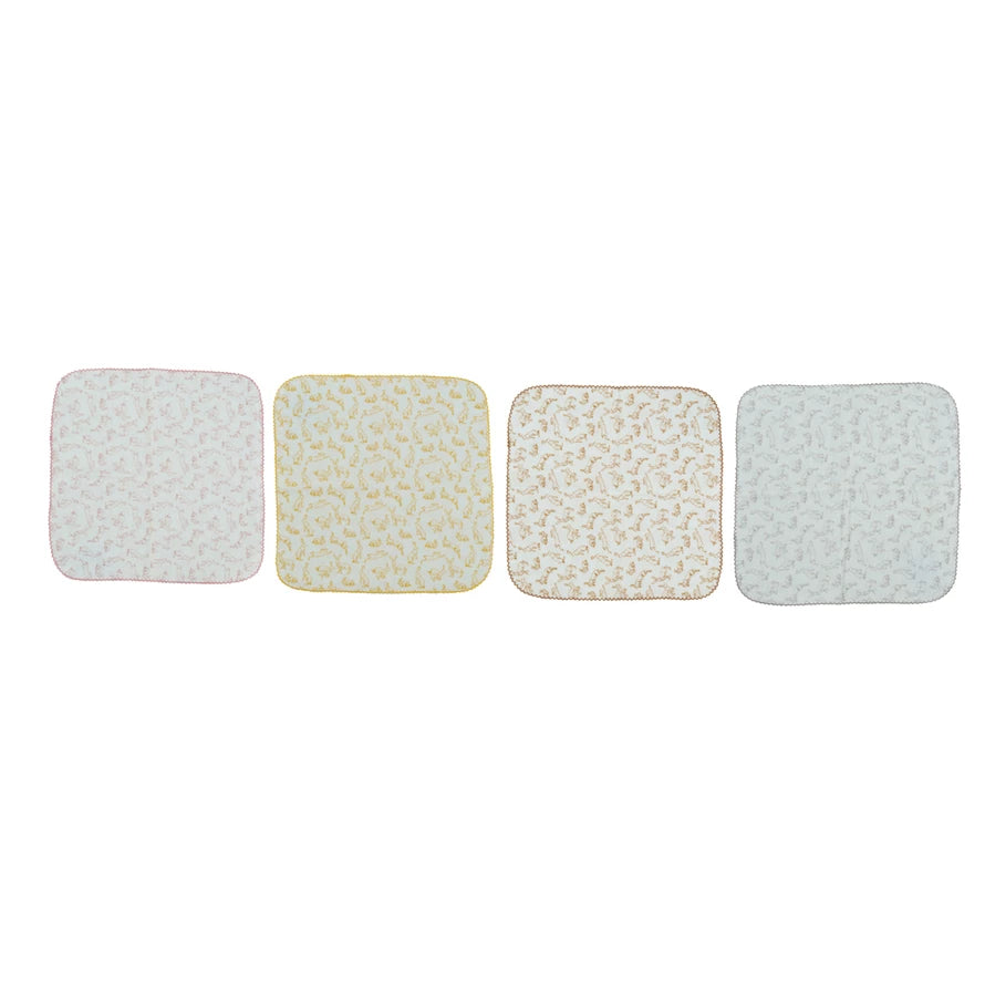 11-3/4" Square Cotton Burp Cloth w/ Rabbits & Stitched Trim, 4 Colors