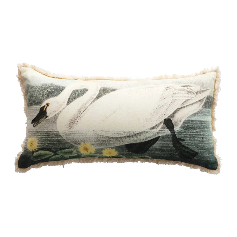 Cotton Lumbar Pillow, Swan