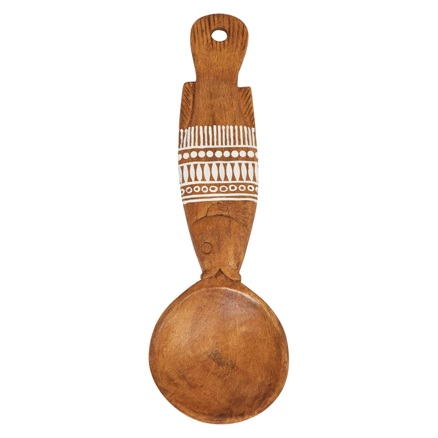 Add a vintage touch to the kitchen decor with this oversized wall spoon. Made from mango wood, it has been hand-painted with a beautiful white patterned accent. Pair with other oversized wood utensils for a complete and cohesive setting.