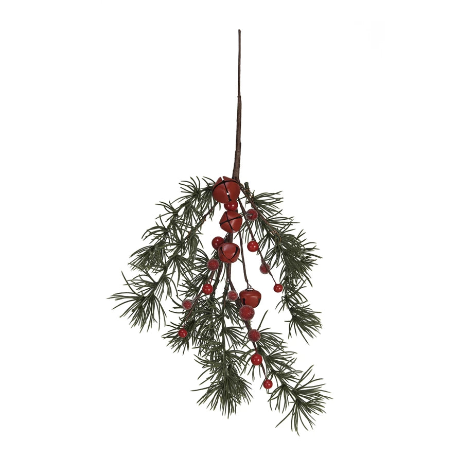 16-1/2"H Faux Berry Pick w/ Jingle Bells, Red & Green