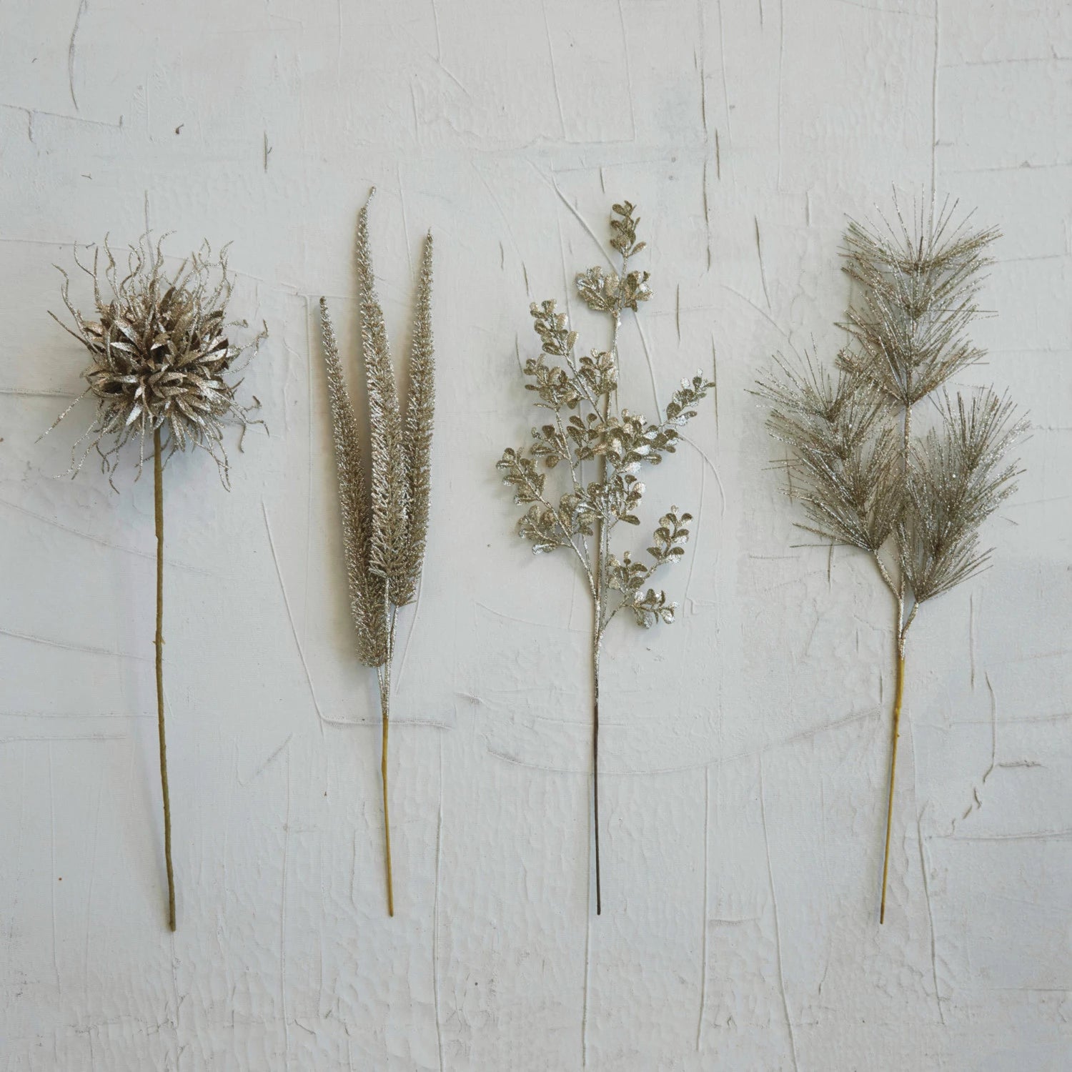 28-1/4"H Faux Pine Pick w/ Glitter, Champagne Color