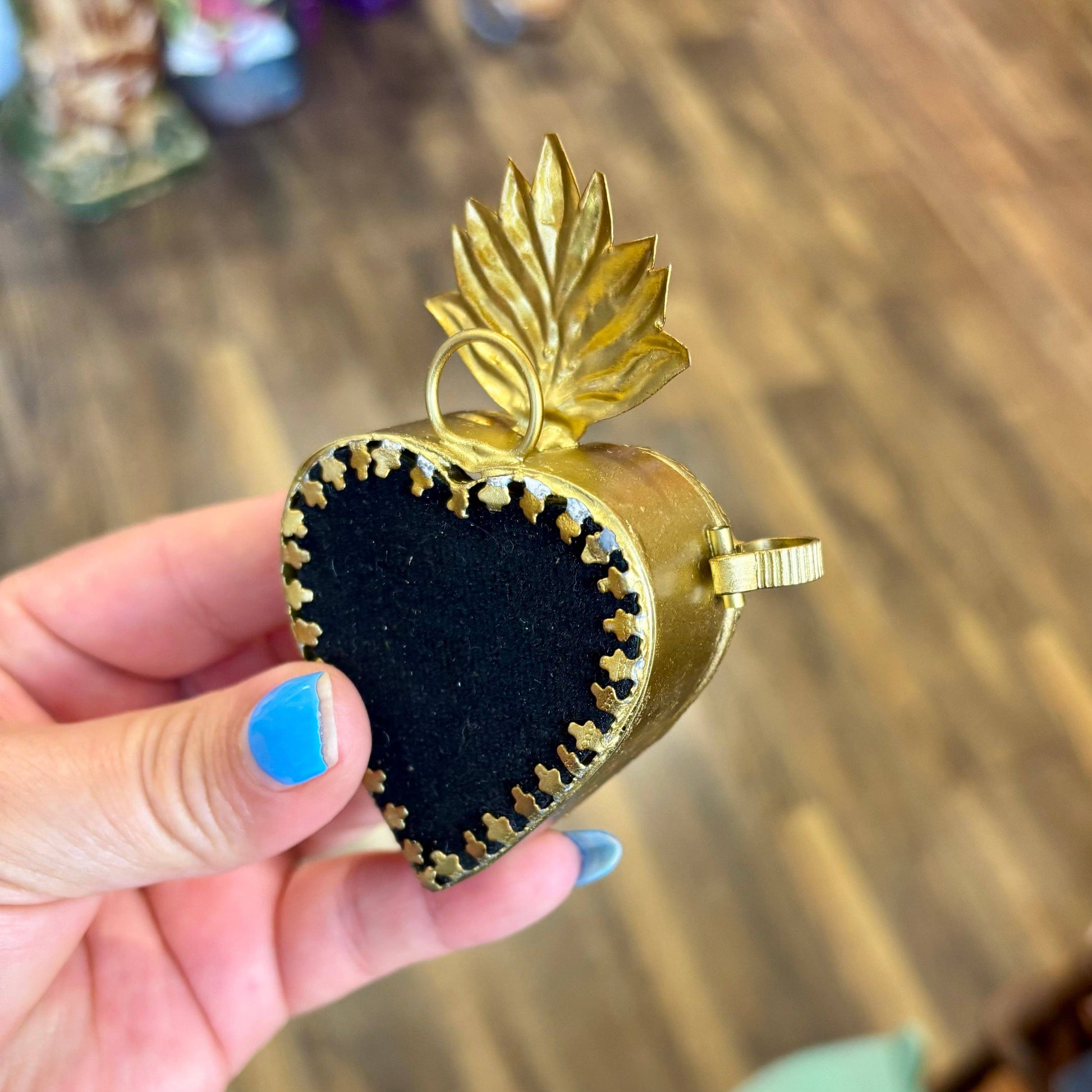 Glass Sacred Heart Boxes open to a mirrored background. Can be used to store keepsakes such as jewelry or rosaries. Also, perfect to store your wedding arras. Made in India.