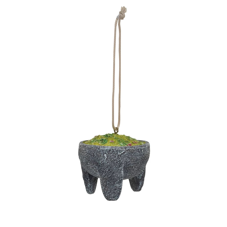 2-1/4"L x 1-3/4"H Resin Guacamole in Molcajete Ornament, Green & Grey