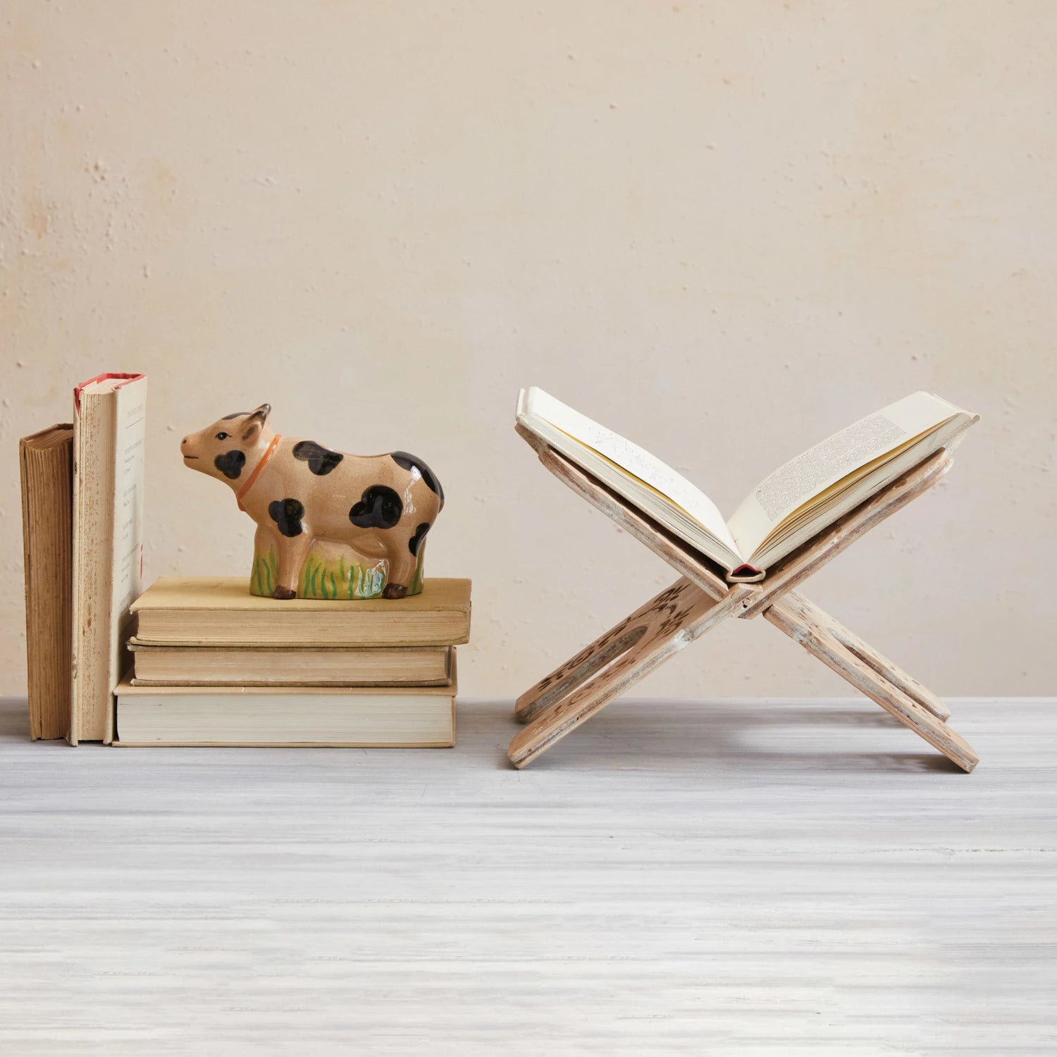 6-1/4"L x 2-1/4"W x 4-1/4"H Hand-Painted Stoneware Cow Shaped Vase w/ Grass, Crackle Glaze, Multi Color (Each One Will Vary)