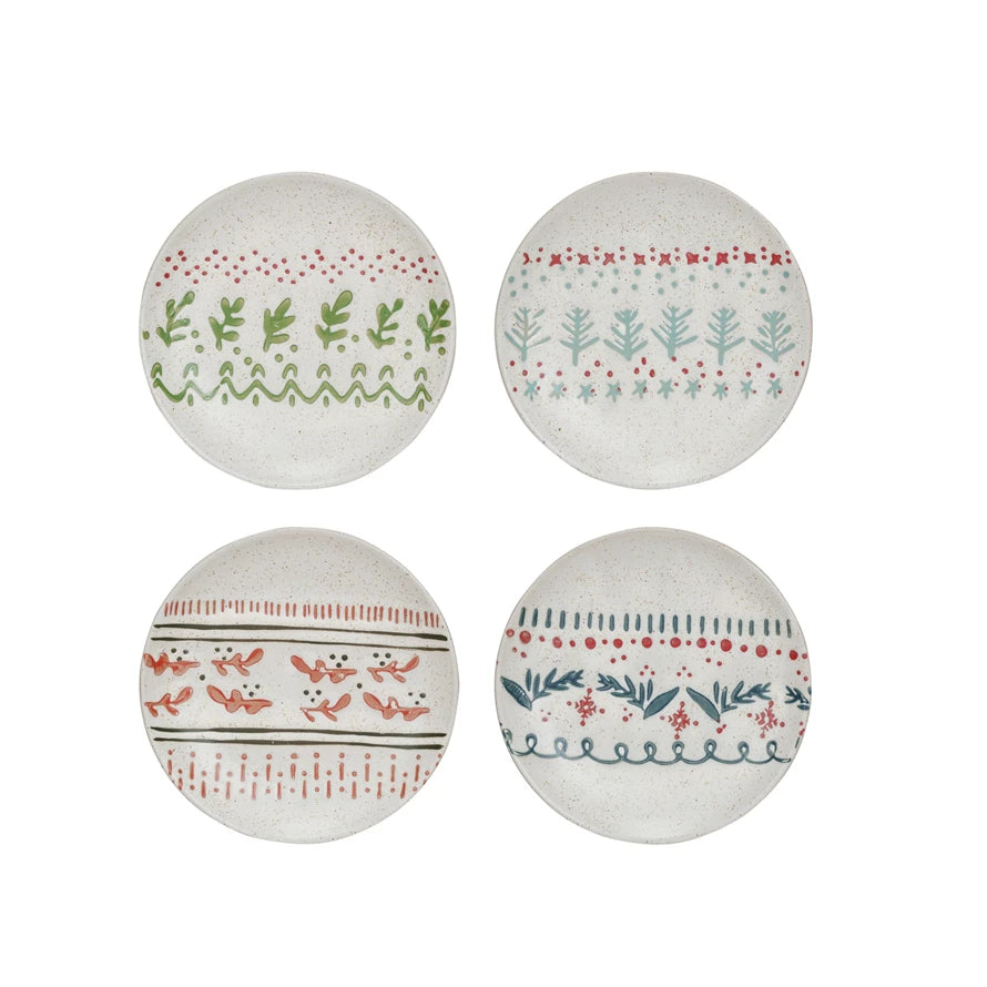 5" Round Hand-Stamped Stoneware Plate w/ Wax Relief Pattern, 4 Styles