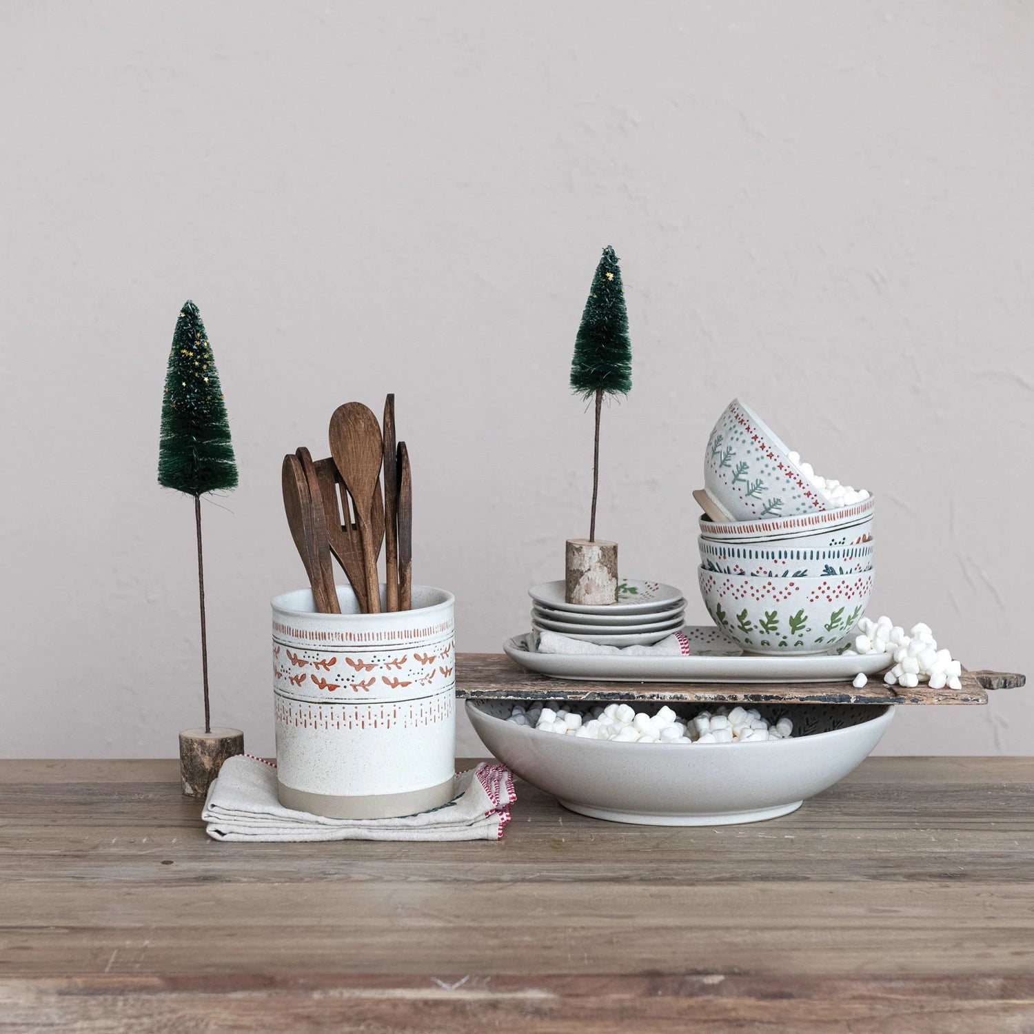 Hand-Stamped Stoneware Serving Bowl