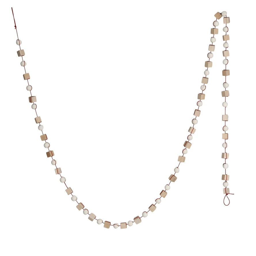 This paulownia wood bead garland is a celebration of natural beauty and design versatility. Each bead, with its unique shape and texture, is threaded onto a striking red polyester string, creating a contrast that's both visually appealing and tactile. The garland's length of 72 inches and height of 0.75 inches make it a perfect fit for a variety of spaces, from draping over a mantelpiece to accenting a centerpiece. It's a piece that brings the warmth and simplicity of nature into the home, offering a serene and stylish accent that complements any decorating theme. Whether it's part of a special event or a staple in everyday decor, this garland is a testament to timeless elegance and quality craftsmanship. A graceful garland of natural Paulownia wood beads in mixed shapes, strung on a vibrant red string. An organic piece that adds a touch of earthy sophistication to any decor, from bohemian to traditional. Perfect for enhancing the natural beauty of the living space or adding a festive touch to celebrations.