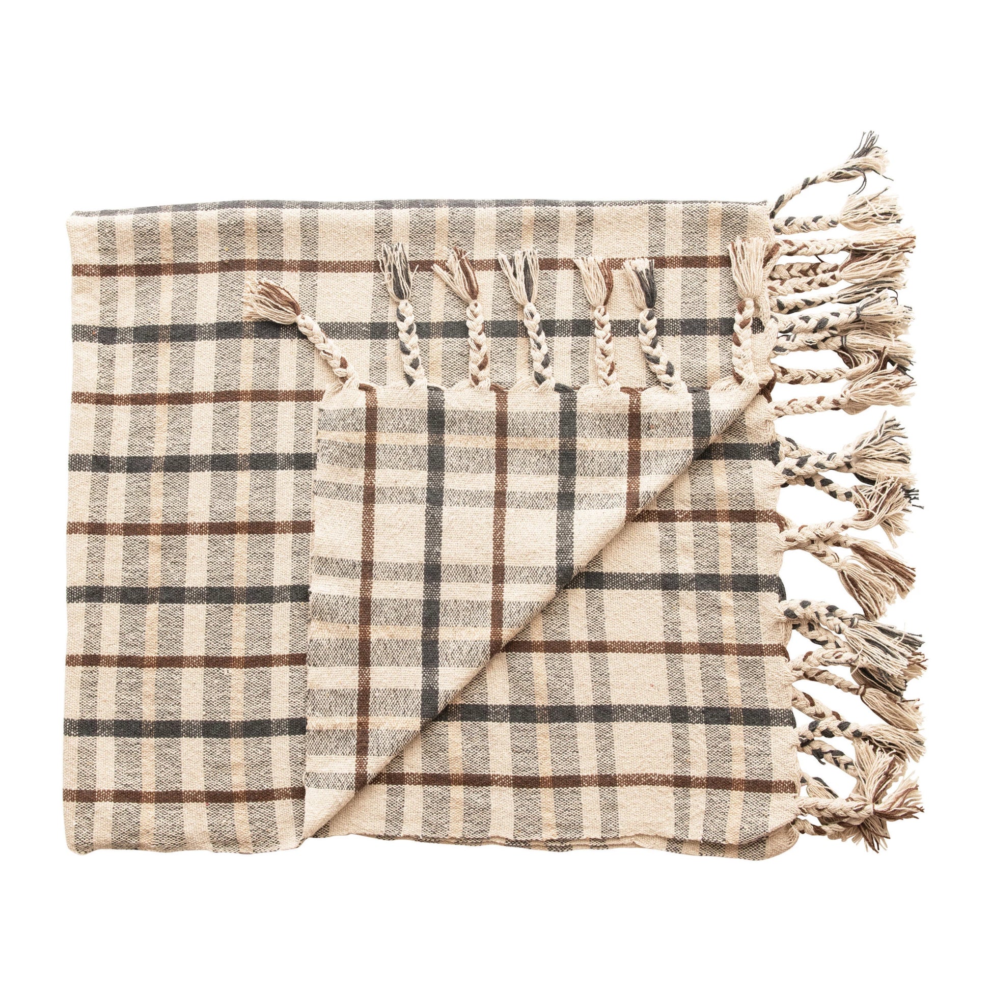 This handsome woven recycled cotton blend plaid throw with tassels is a soft and comfy accessory. It is a functional and stylish accessory for your bedroom or living room that complements many decor styles.