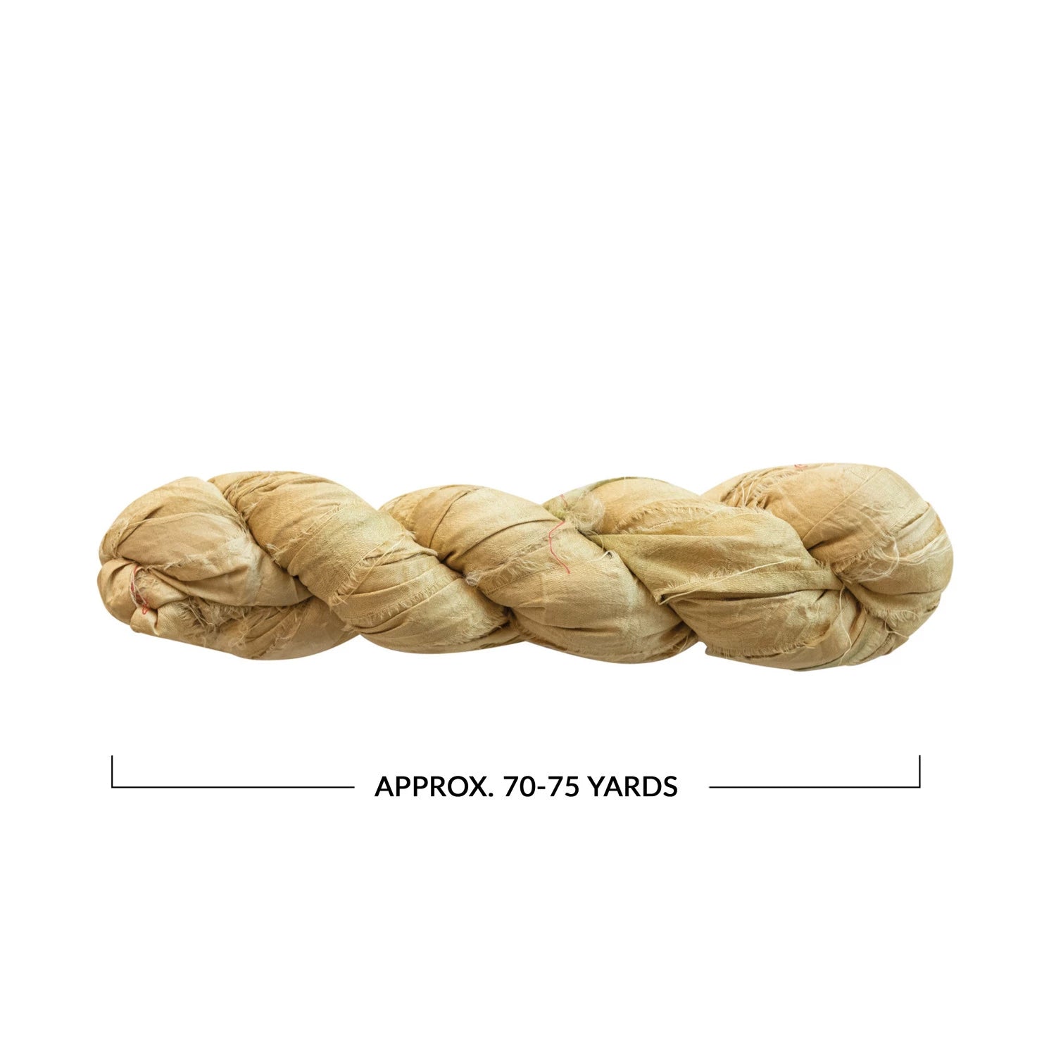 Approximately 70-75 Yard Recycled Torn Silk Ribbon, Khaki Color (Each One Will Vary)