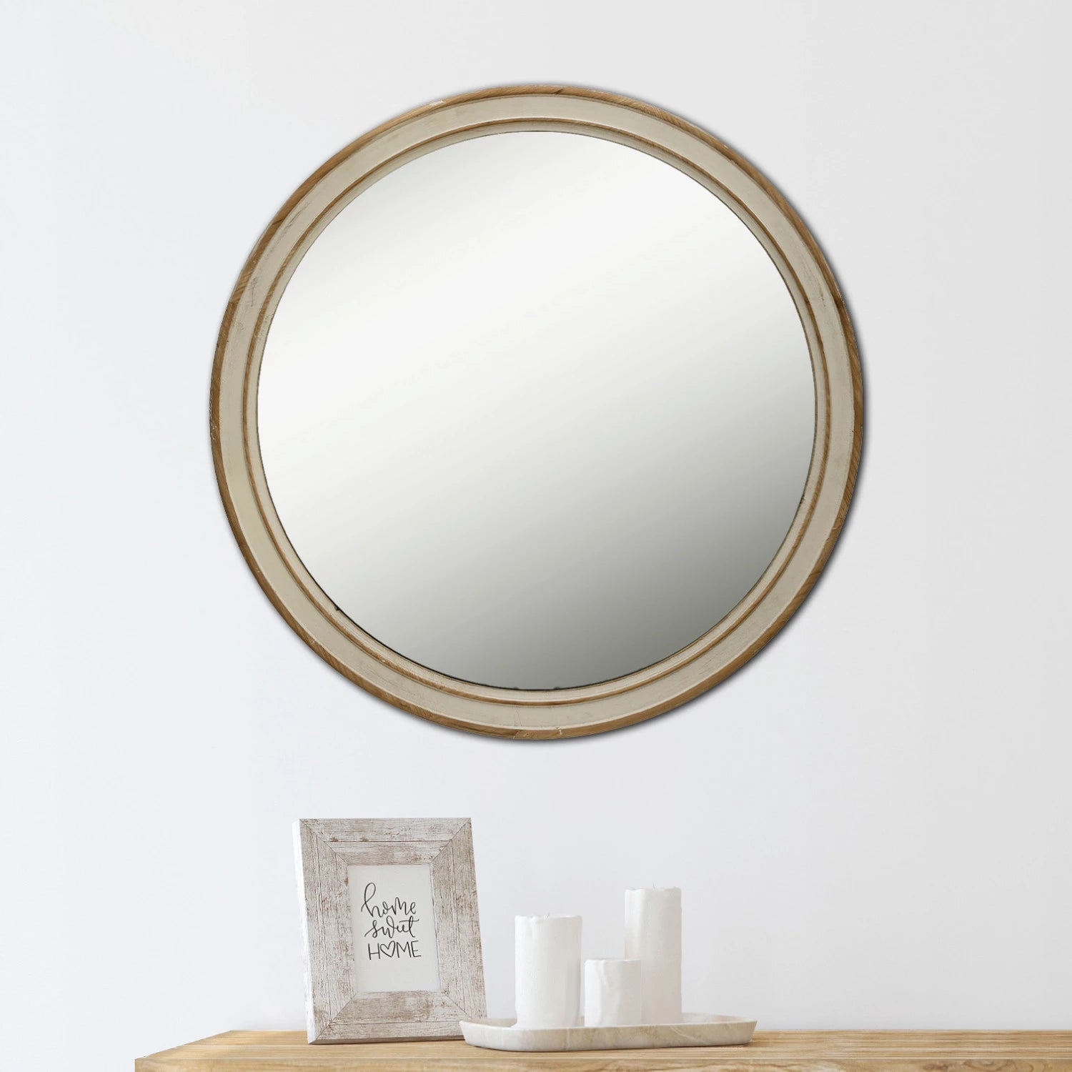 This framed mirror has a beautiful, rustic aspect. The antiqued white is slightly distressed, showing the natural wood from beneath. This simple piece will compliment any home.