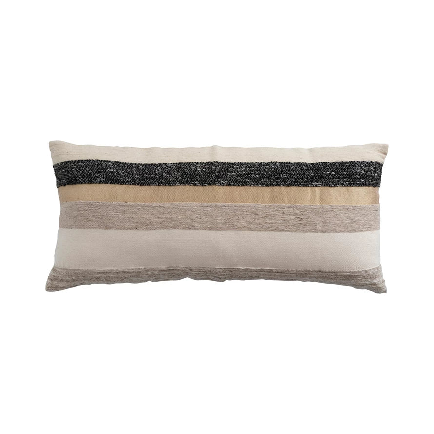 Woven Wool Blend Lumbar Pillow with Gold Metallic Thread & Stripes